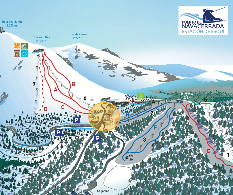 - Zona alta (Bola del Mundo / Guarramillas): de mayor altitud y exigencia, pensada para esquiadores con experiencia. Ofrece descensos más técnicos y vistas panorámicas de la sierra.